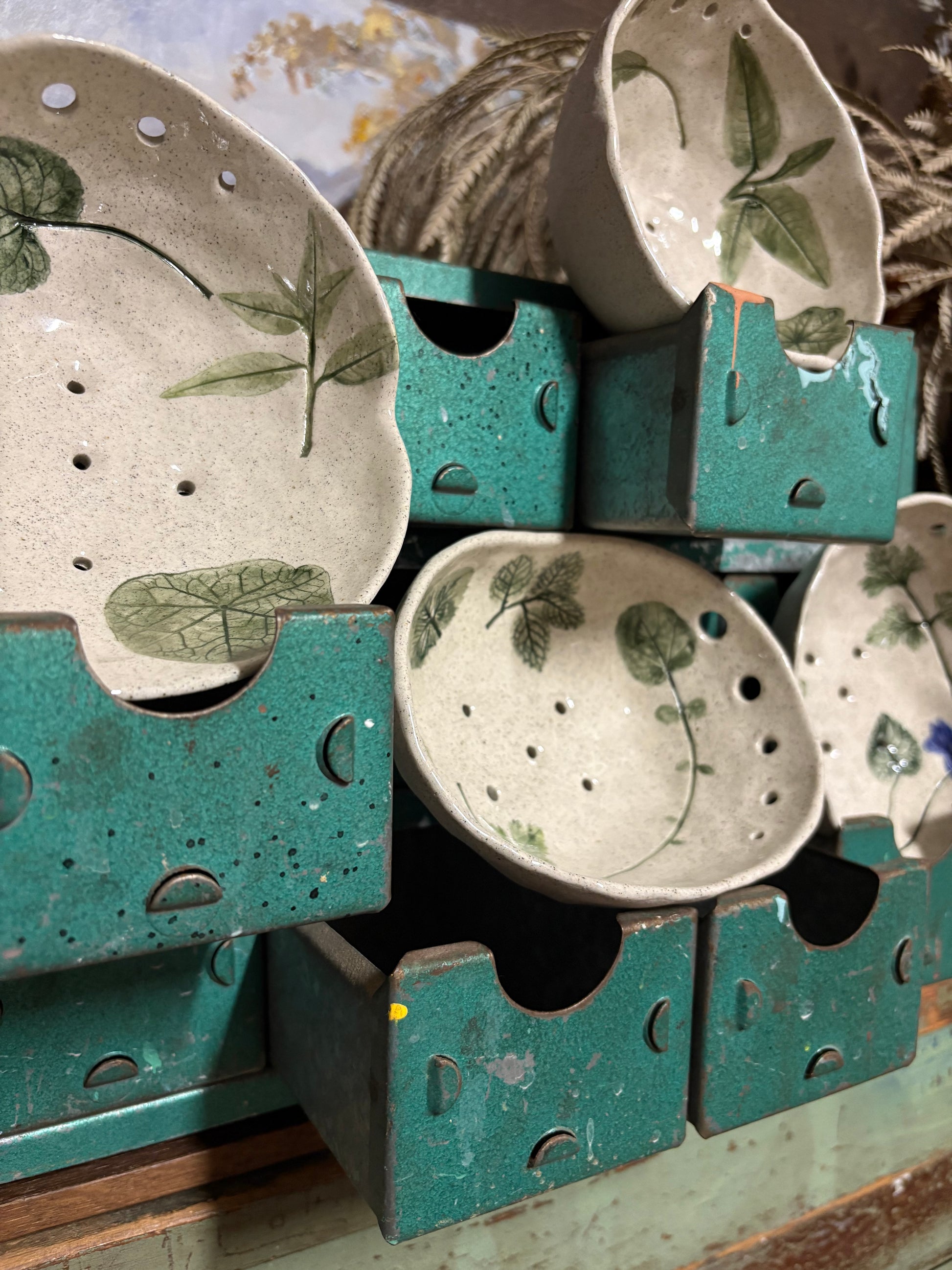 Natasha from Garden Curiosities based in Melbourne hand builds these incredible pieces. She then uses plants picked from her garden to decorate each one and glazes everything to create these amazing pieces.
