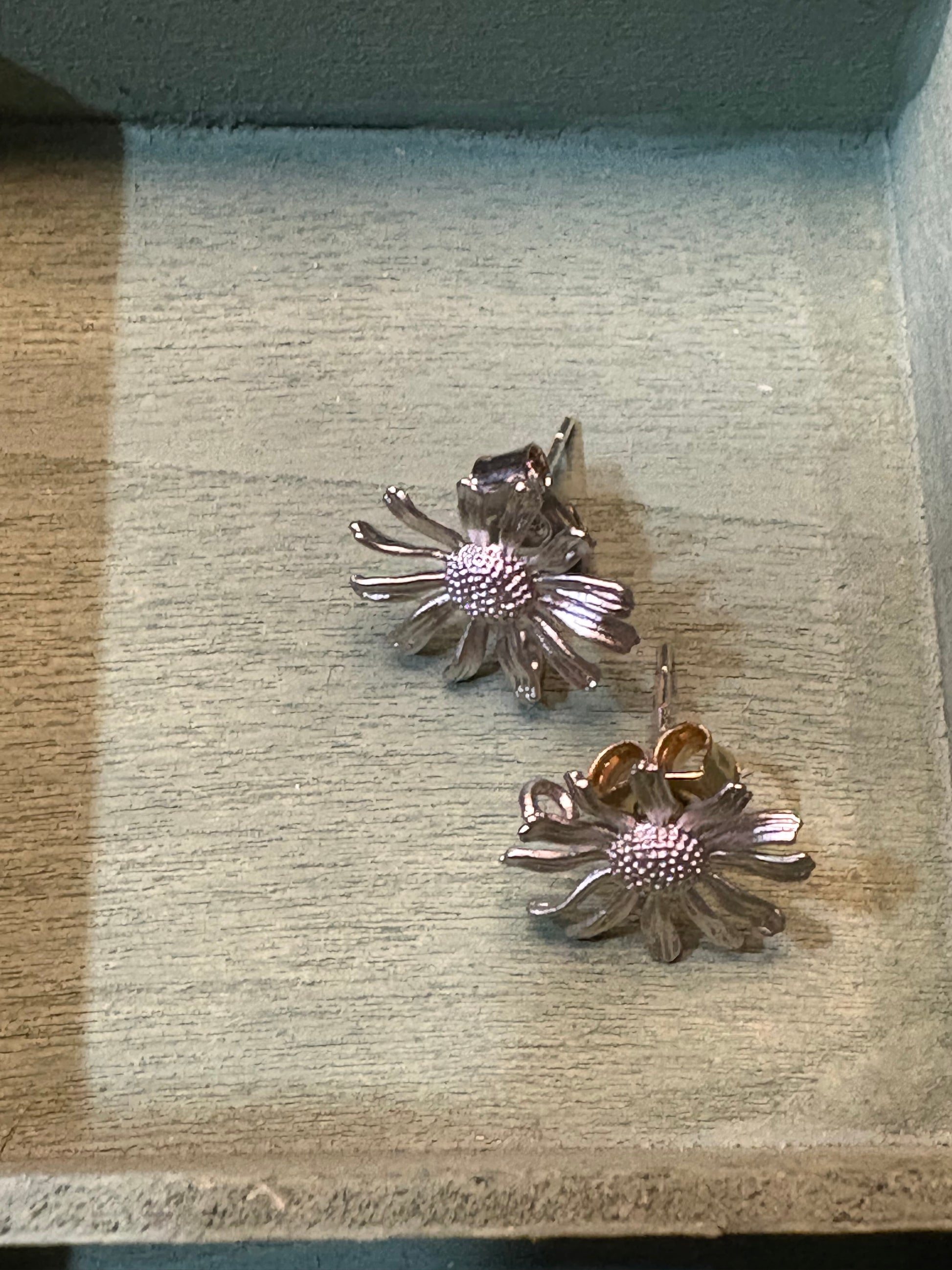 Silver Stud Earrings Made using recycled Brass and sterling silver
