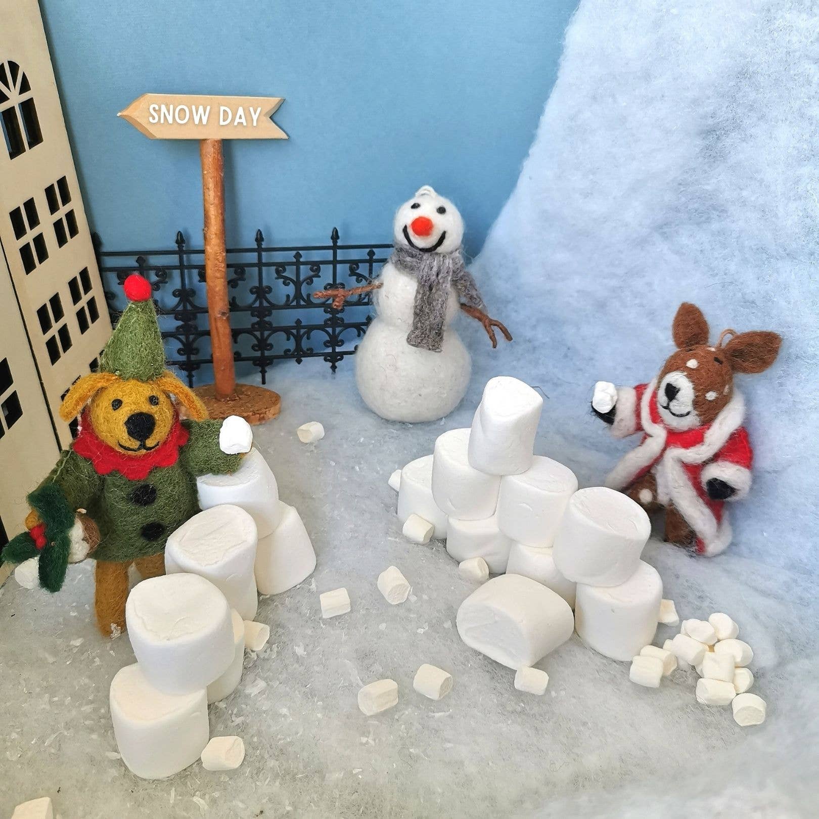 Bernard the Dog is here to help you with all your Christmas Pudding needs this season. Dressed as one of Santa's little helpers, his festive outfit has been handstitched to his needle felted body along with a delicious looking wet felted Christmas Pud! This festive pooch is made from 100% sustainable New Zealand wool and is completely plastic free.