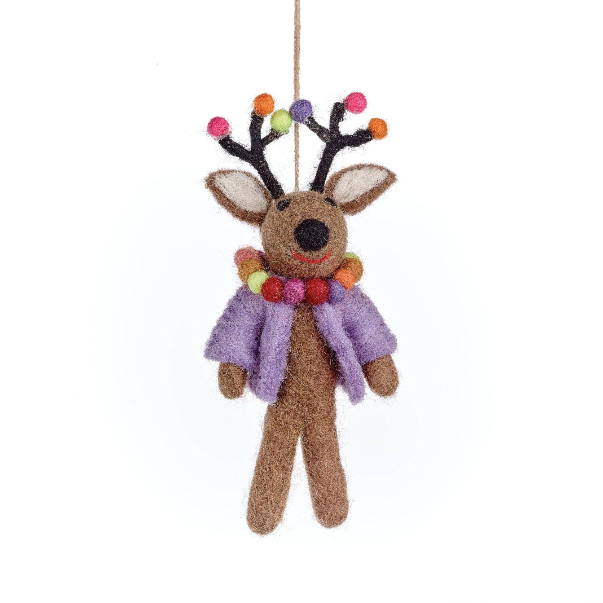 Handmade Felt Donner the Neon Reindeer Christmas Decoration