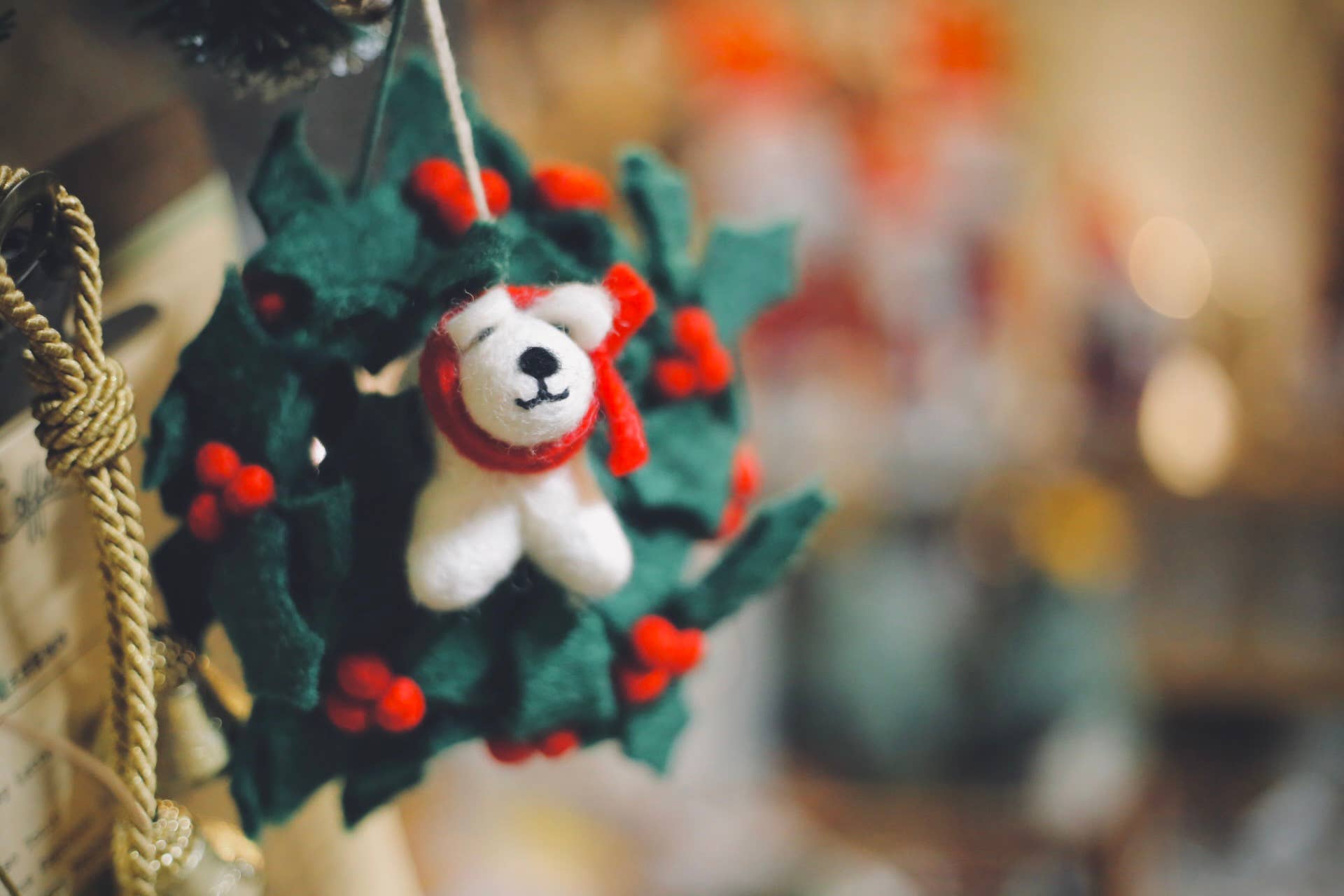 Handmade Felt Fair tade Holly Mini Wreath Christmas Decor