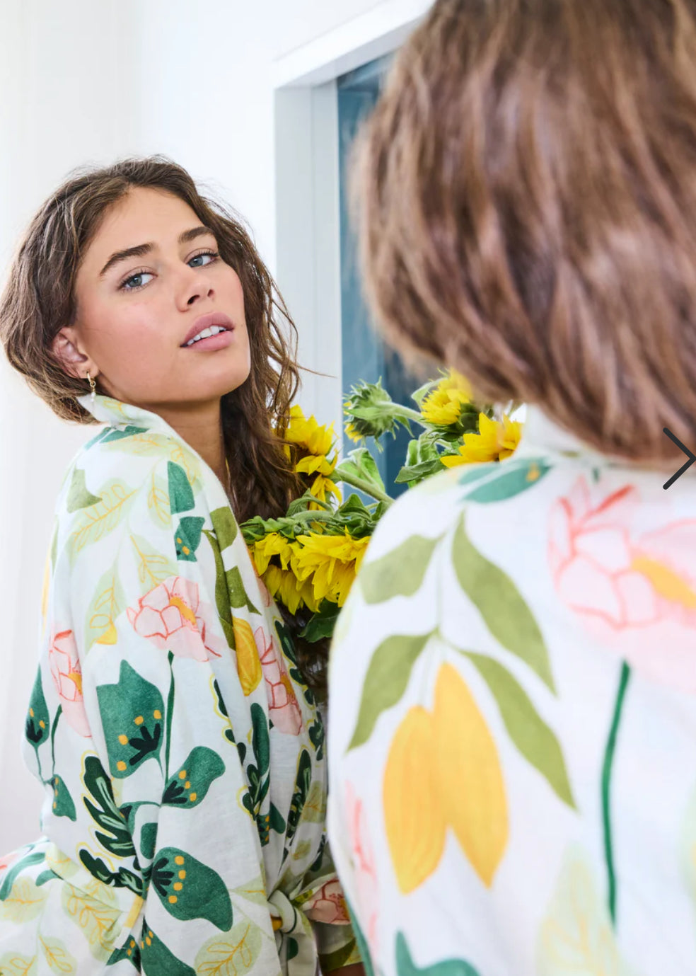 Slip into something comfy with our Wander Linen Robe. Crafted from breathable, airy linen, it’s the perfect companion for slow mornings, post-swim lounging, or relaxed summer evenings. Lightweight, and effortlessly chic, this robe brings a splash of summer ease to your everyday - the ultimate in laid-back luxury, Kip&Co style. Our Wander print is filled with blooming pink hued magnolias and lush greenery on a white base.