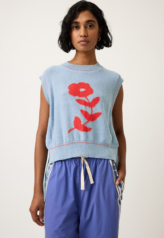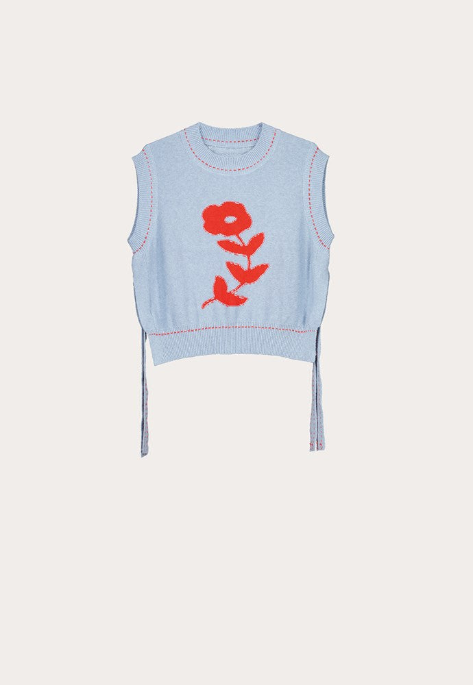 Introducing our Cotton Cashmere Aria Vest with fun floral motif—perfect for layering and easy styling.