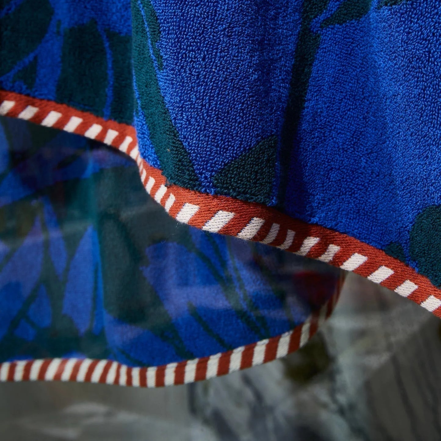 “Our Benita towels burst to life with botanicals, offering an oversized take on classic floral prints. Combine that with unexpected striped edging, and every beach day or bath ritual gets just a little bit better.” – Phoebe’s Style Notes