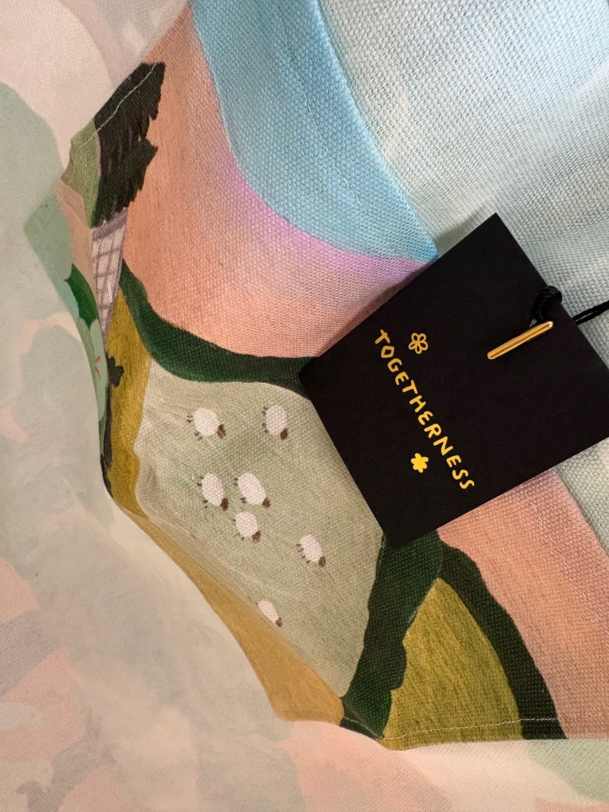 Made from sturdy organic cotton canvas, this bag features a signature Togetherness textile design. Our tote comes with a hand outside pocket and is topped off with handmade ceramic keyring.